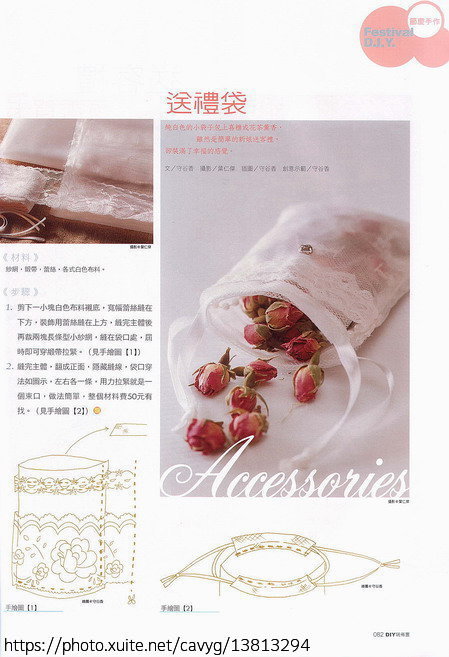 縫在袋口處,屆時即可穿緞帶拉緊。