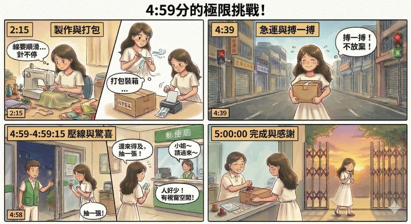 但是郵局用5:00關門,只剩下幾分鐘,而且通常郵務會大排長龍,不知道能不能來得及抵達,這時間實在是太緊了,內在說搏一搏!先不要放棄,這樣對方就可以不用再等到下一週了。