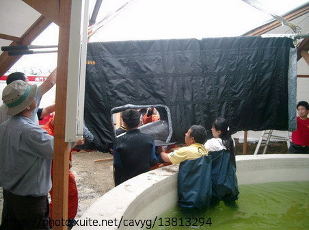 在餓了四天之後,我們都擔心她的體力,可是沒想到一直奄奄一息的她,開始想游,在水池中她傾斜著擺動,我和黃大哥集力扶正她,都感覺到那堅強的求生意志,也許是水位終於高些,也許是以為游得回家,但是這裡,離大海還有一段很長的路,再忍耐一下,先別急著游,等醫生讓妳吃點東西再動吧,這一路的勞累與緊迫,擔心妳的身體禁不起這樣的耗動。