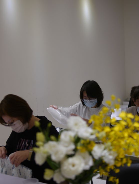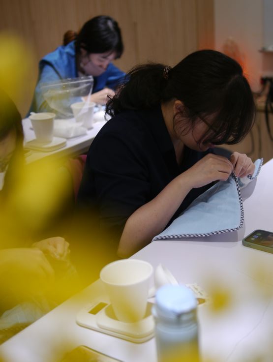 整場的安靜與縫癒,心理師和媽媽們在自己的針線中,感受著越縫越重的重量毯,越來越多的微笑綻放在整個空間中,今天的此刻的美好,請不要忘記。