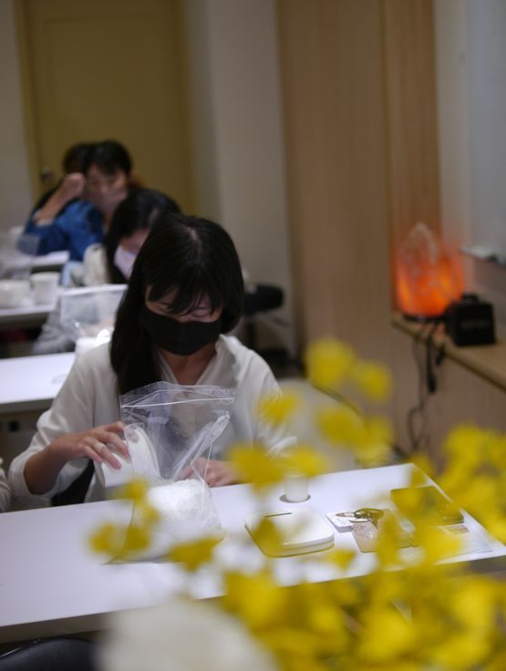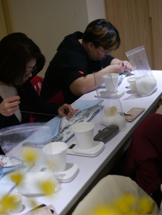 場地裡塞滿了空間上限的人數,一張桌子擠三個人,知道許多人是特別請假安排一天來的,這一天的相逢,彼此都是滿滿的期待與準備,充滿順流的一天,是因為彼此的心意一致,共同珍惜著這次的課程,專注於所有的細節,得以把最無價的存在重量,用這樣的方式瞬間保存下來。