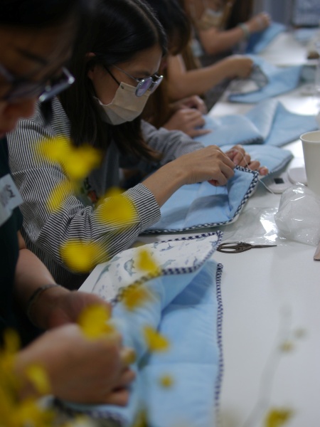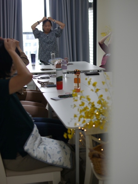趁滿月的日子,來分享這一天的照片,難得嘉琪從美國回來,我們兩個一起開課,有一個完整的時間可以跟來上課的學員們一起相逢,早上我帶著大家縫製重量毯,下午看著大家在腿上披著、肩膀蓋著、頭頂矇著重量毯,聽著嘉琪的課,也沈浸在引導中,大家幫自己敲敲打打鬆弛神經。