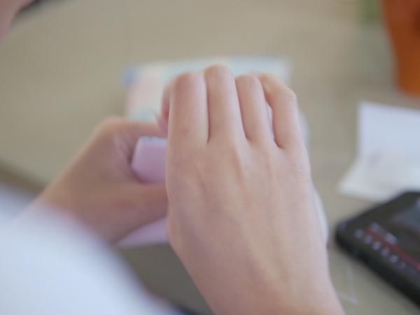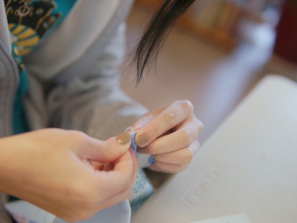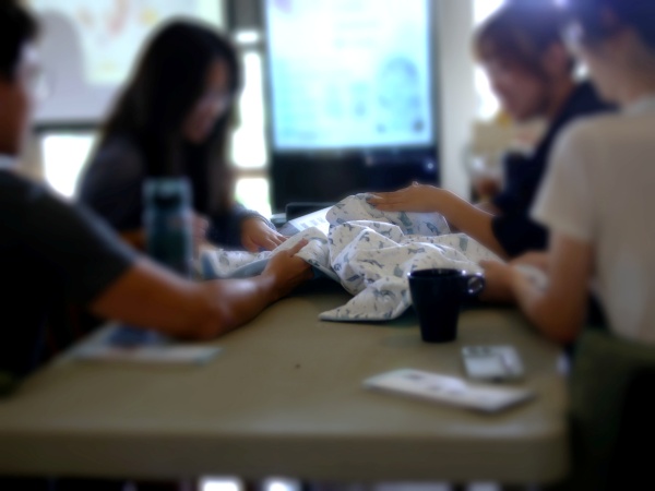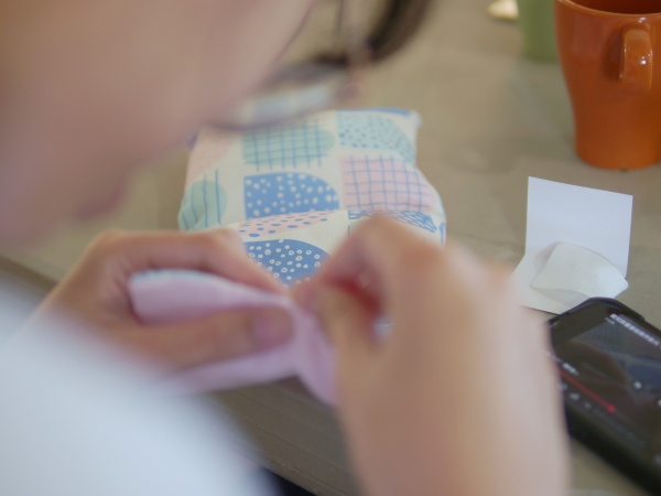 在手作時,當學生們拿著自己縫製中的重量毯前來詢問,我發現很多布料都被汗水浸濕了,十個人裡有七、八個都是如此。這是專注、認真又緊張的表徵之一。但同時,學生們也以極為細膩的方式把重量毯縫合起來,直到收到稱讚,才終於相信:自己真的做得很好。