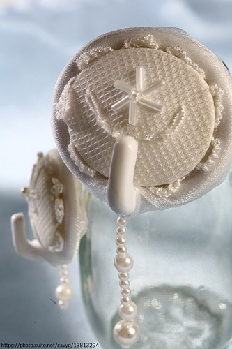 3選一塊硬紙片,包一塊白布,在上面縫上珠珠。